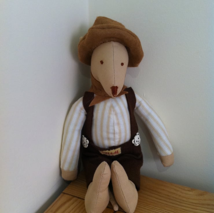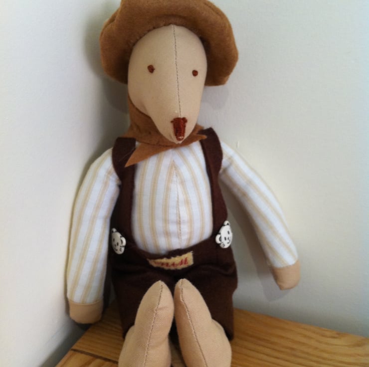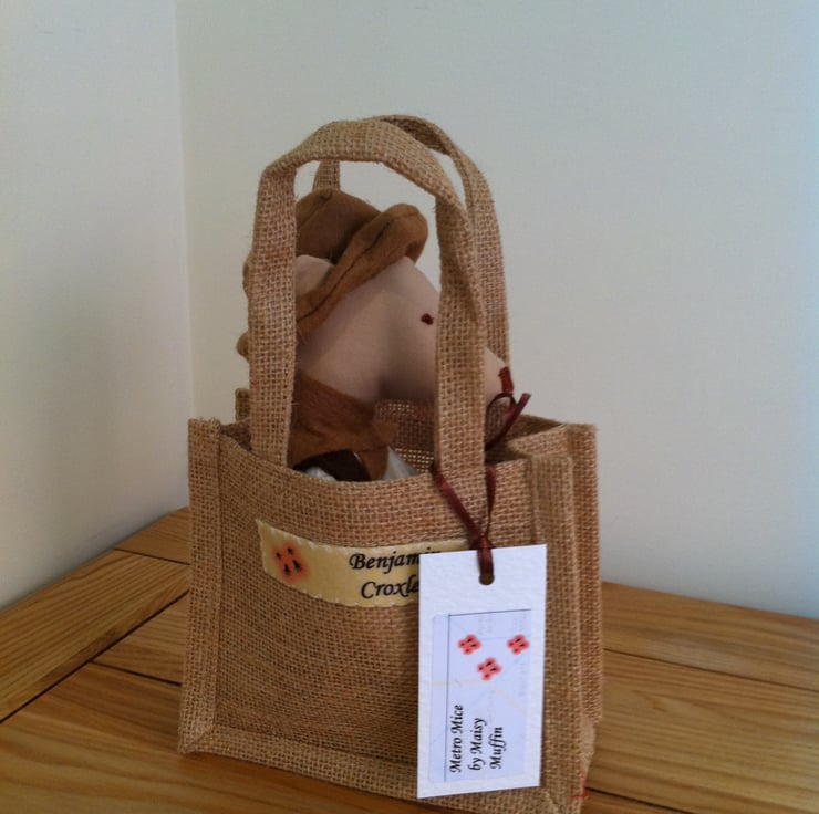 Benjamin Croxley is a Metro Mouse. He is made of best quality cotton and is approx 28cm tall. He comes in a jute carry bag decorated with his name.