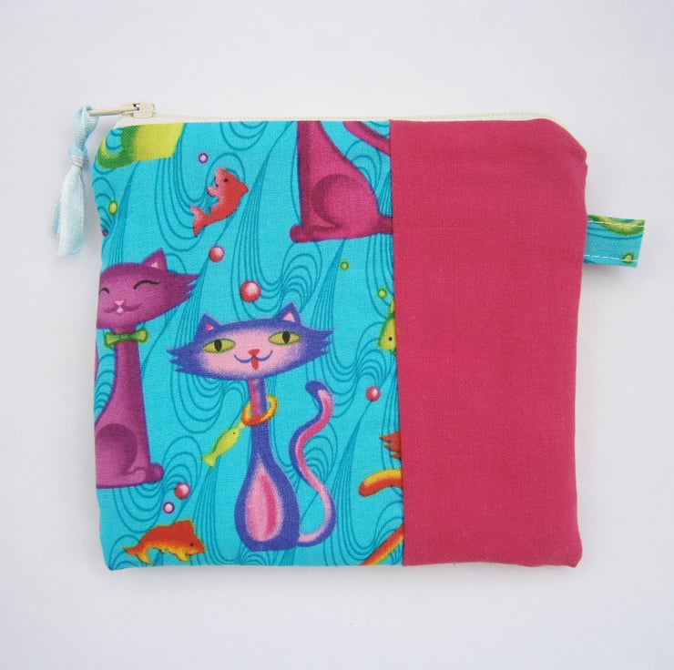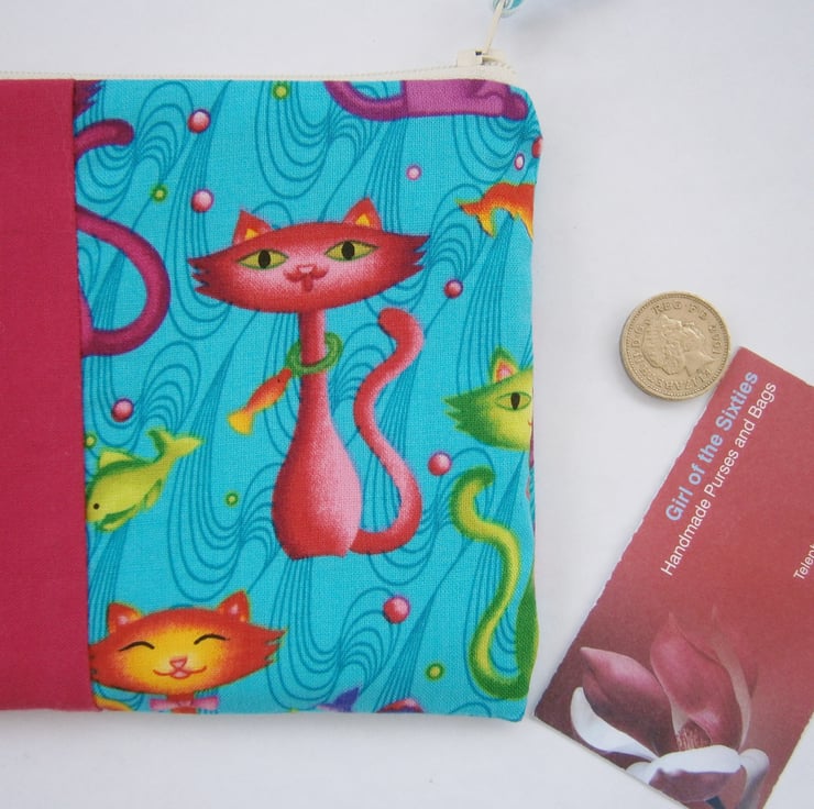 Pretty little Colourful Cats printed fabric coin purse, perfect for your coins, notes and cards.