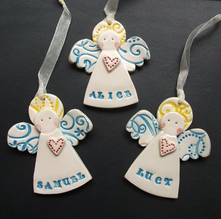 This can then be personalised with a child's name. If the name is longer than 6 letters, the angel's skirt will have to be a little bit wider! Perfect for Christenings/ Birthdays/ Christmas.