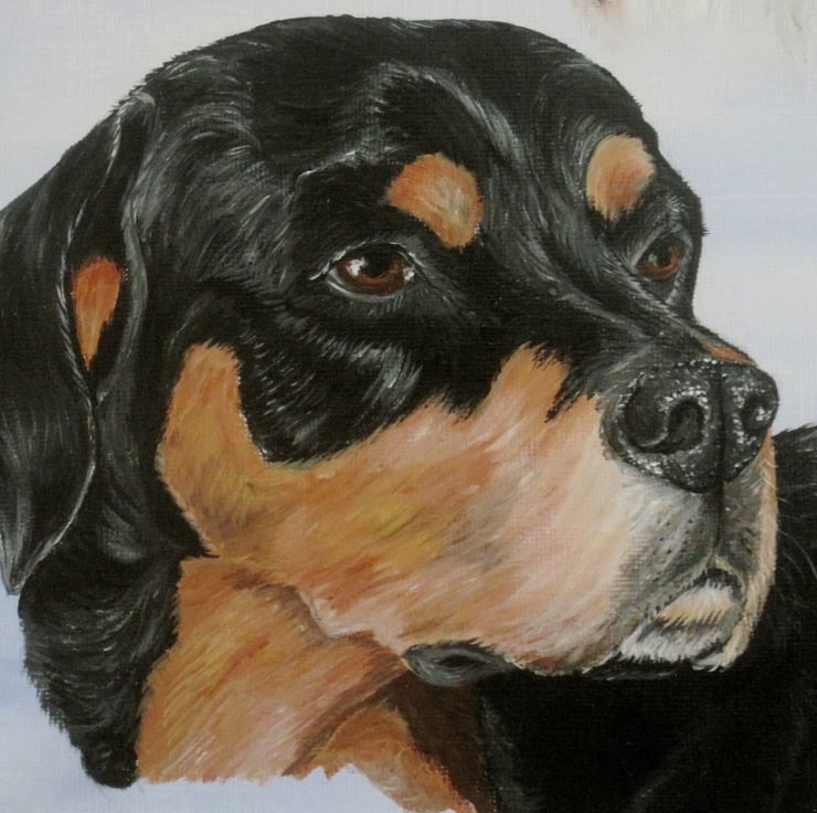 Custom pet portrait, painted in acrylics on acrylic canvas paper. Simply email me the photo you want painting of your pet, and I will paint you an original portrait.