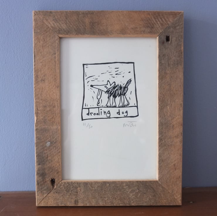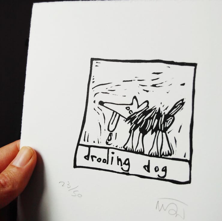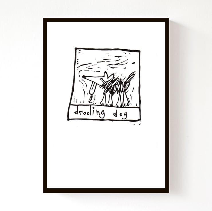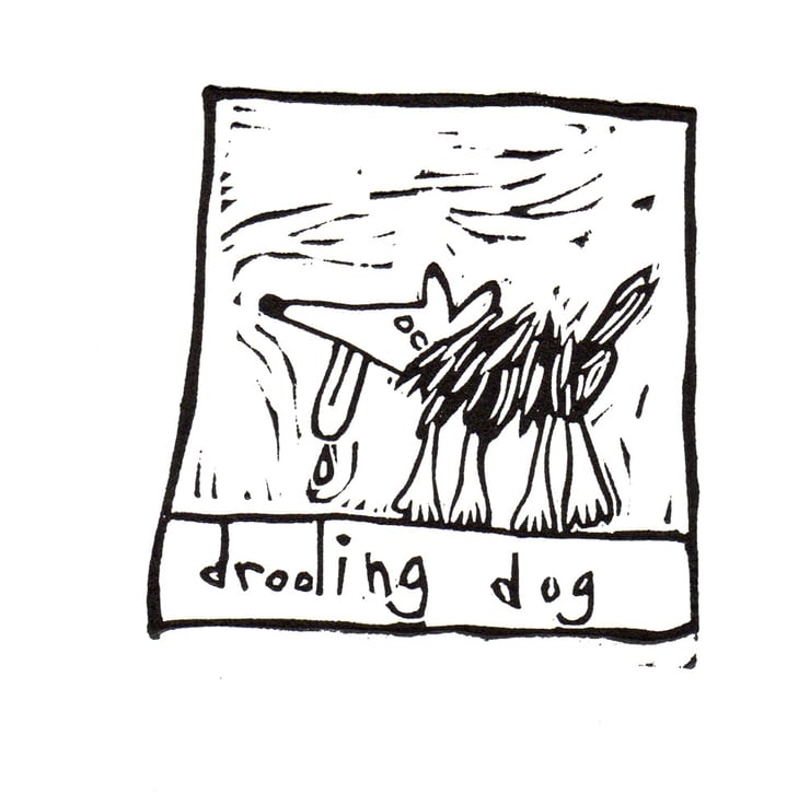 Drooling Dog, original lino print - dog art, dog print, dog pictures