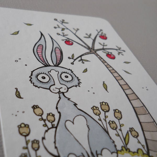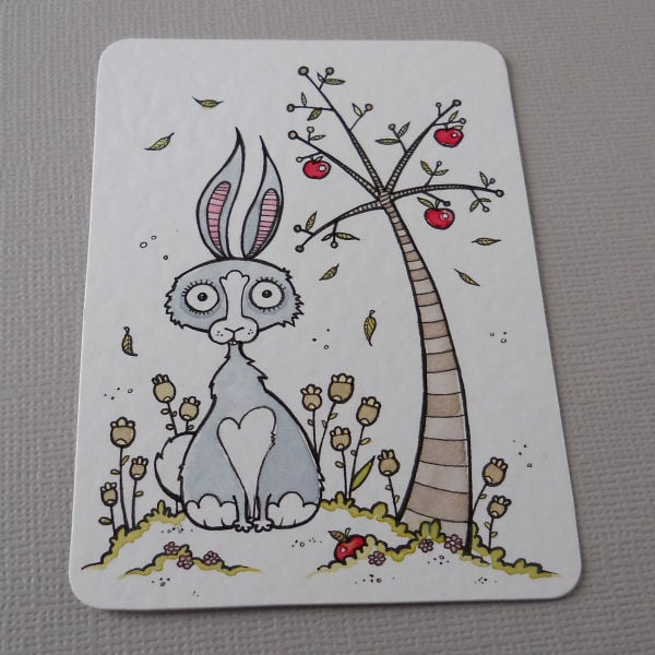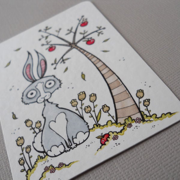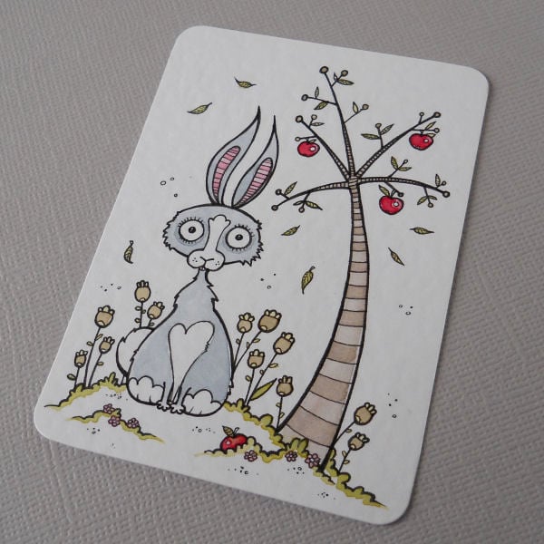 this sweet rabbit is feeling a touch autumnal! sitting amongst the old poppy seedheads as the leaves in the trees change colour and start to fall around him... let's hope a falling apple doesn't hit him on the head!