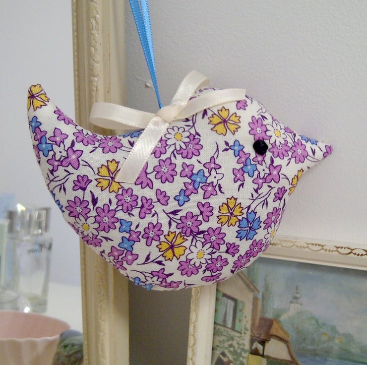 This little lavender scented bird looks lovely hanging in a room, on a door or bedpost as a pretty decoration. Or tuck it into your wardrobe to delicately freshen and scent your clothes. It makes an ideal little Christmas stocking filler, or a gift to say thank you, get well, or happy birthday...or just treat yourself!