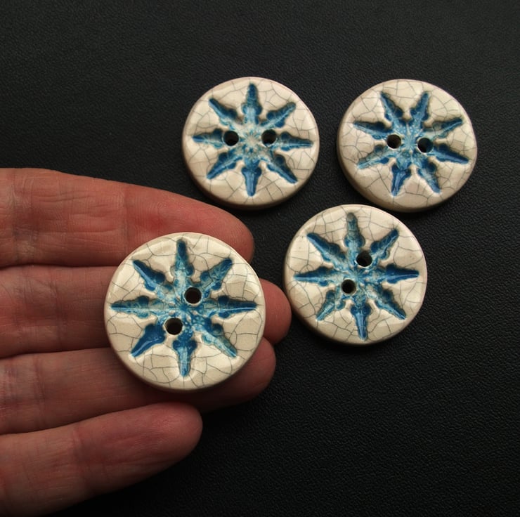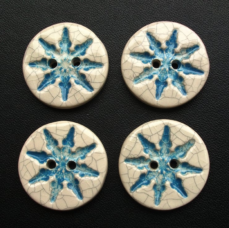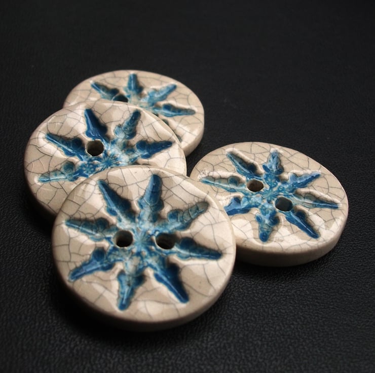 SALE set of four large Christmas crackle snowflake ceramic buttons