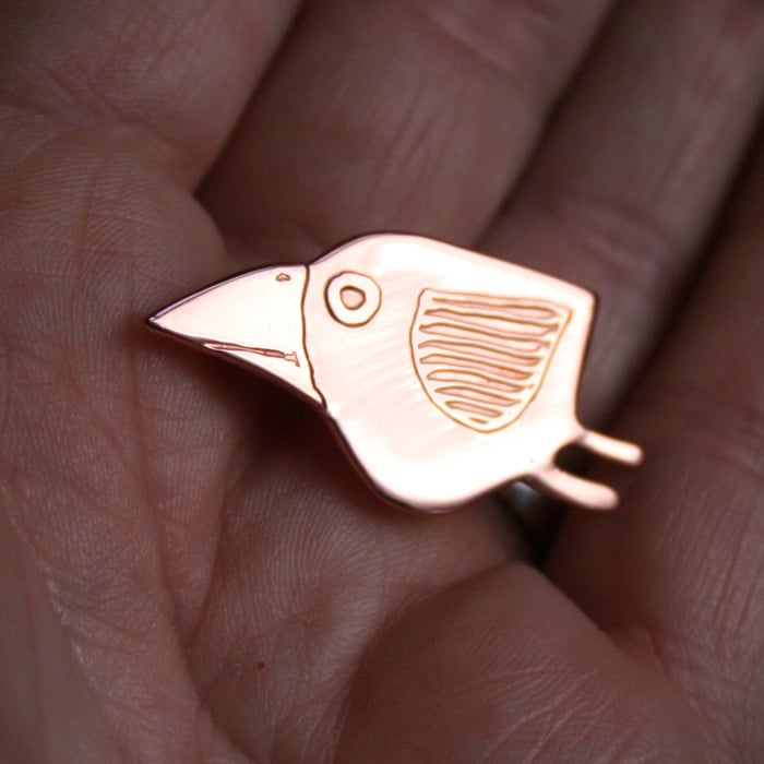 Small handmafe copper bird brooch.