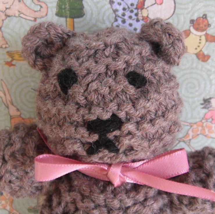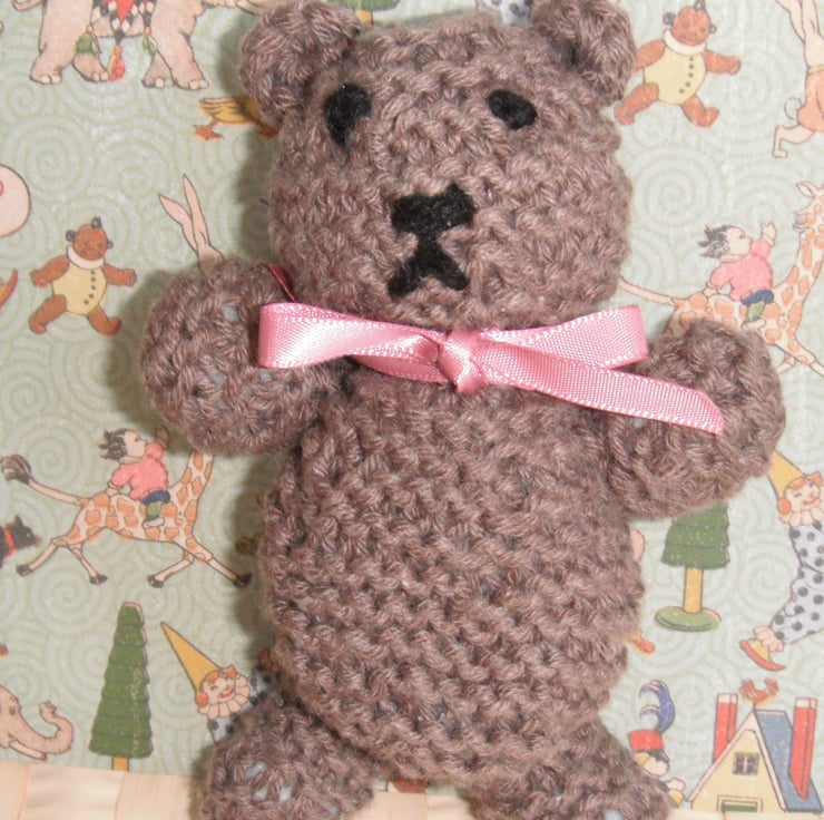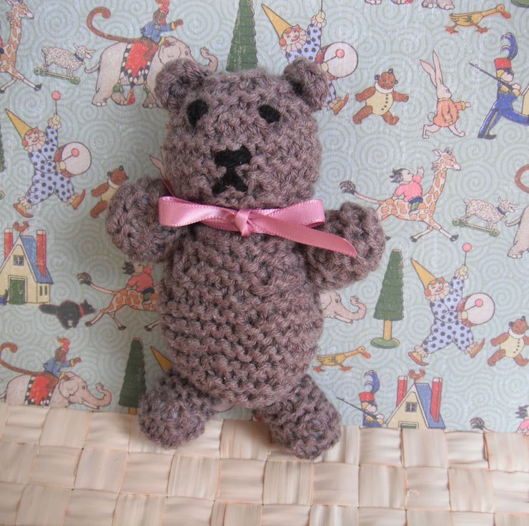 Cute Hand Knitted Teddy Bear, stands 12cm tall.