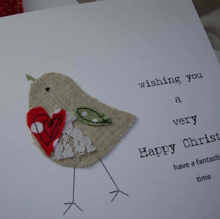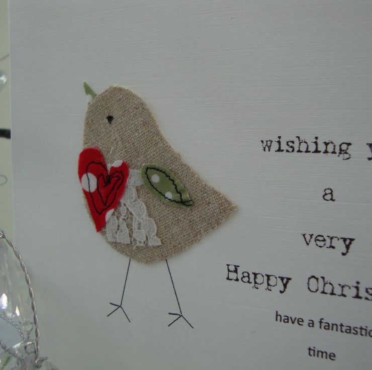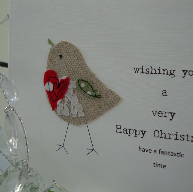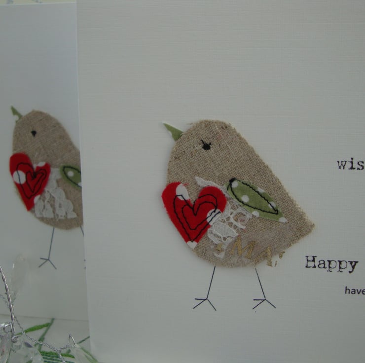 Made from fabric and machine embroidered onto card, this lovely card comes with the words