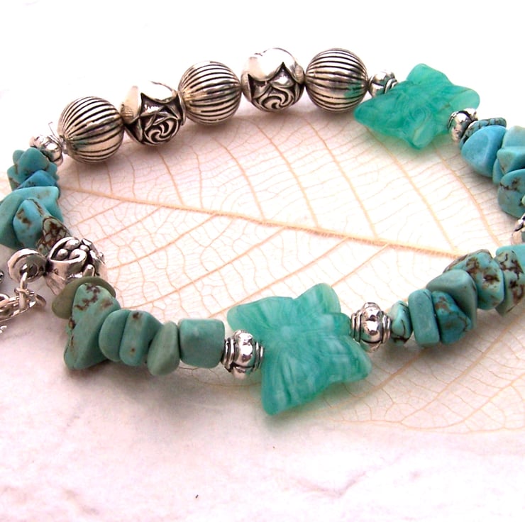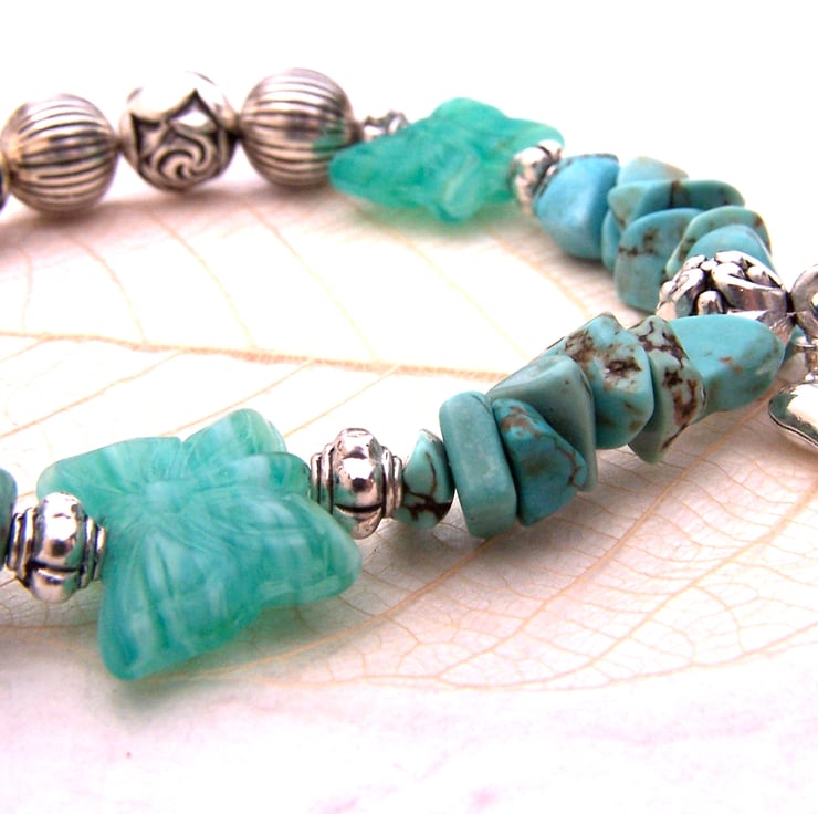 This turquoise bracelet with its butterfly beads and charms and turquoise stones would make the perfect Christmas gift for butterfly lovers!