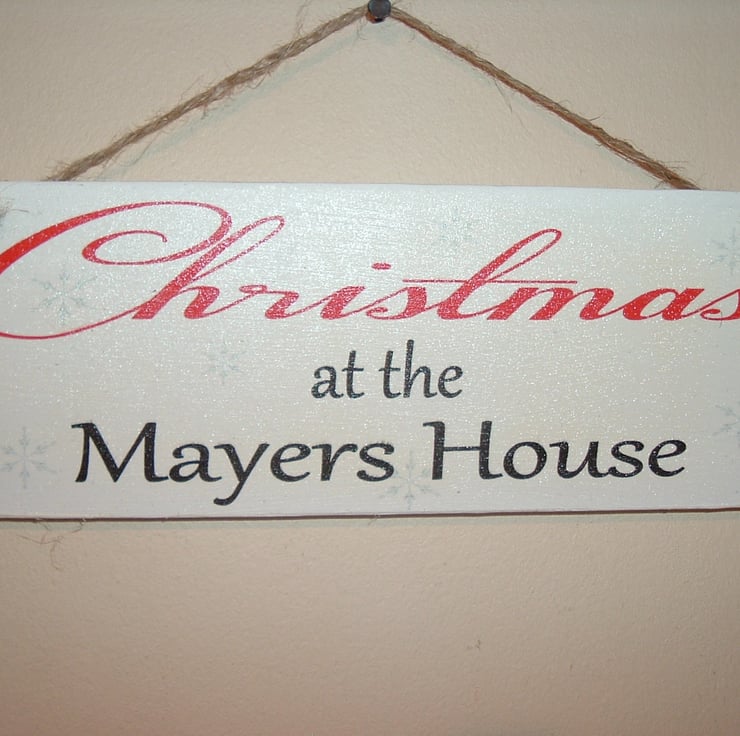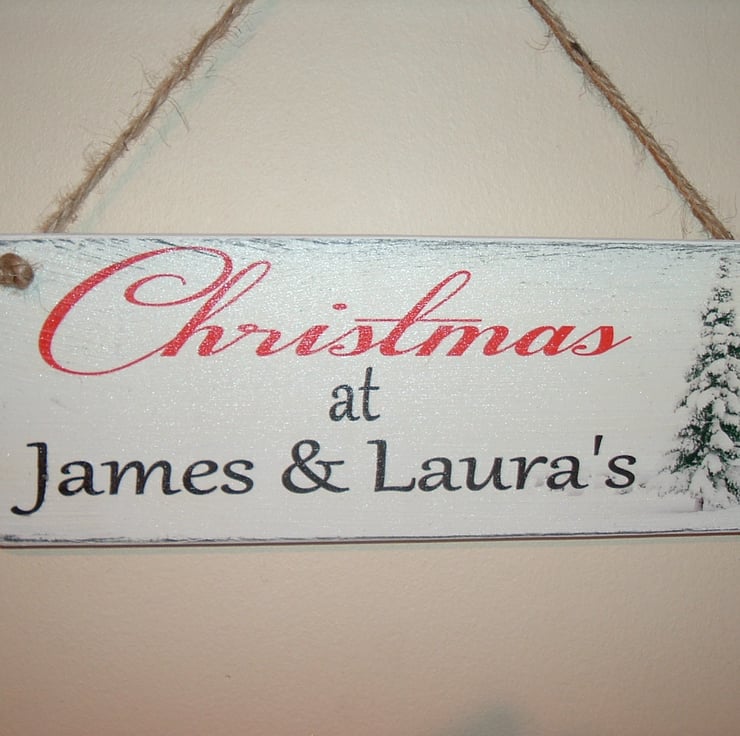 Lovely personalised christmas plaque sign, antique white wooden plaque, approx 3x8 inch and hung with natural jute, please let me know which design you would like along with any personalisation. please allow 4 days crafting thanks