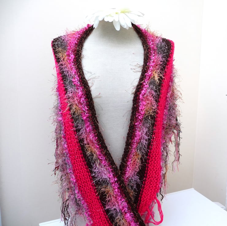 A Shawl to compliment any outfit. 220cm wide and 96cm from top to triangle bottom.