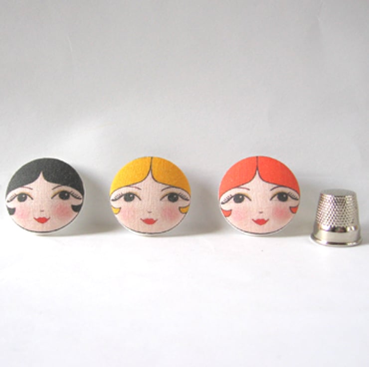 Original Doll Face Covered Buttons (Set of 3) size 29mm