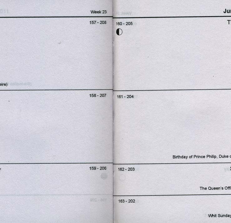 The actual diary inside has a week to view, and when finished measures approximately 5 inches by 3 inches ( 12.5cm x 7.8 cm ) and will be for 2013 NOT 2012 as shown in photo.
