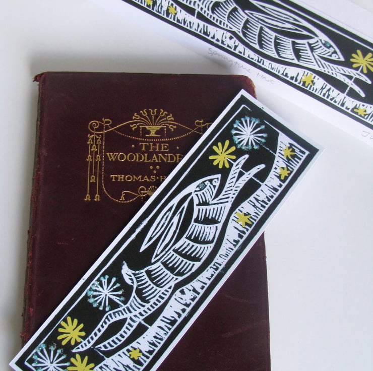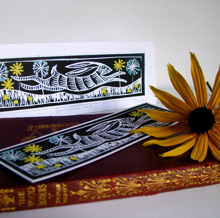 'Springtime Hare' blank bookmark card (birthdays and other occasions)