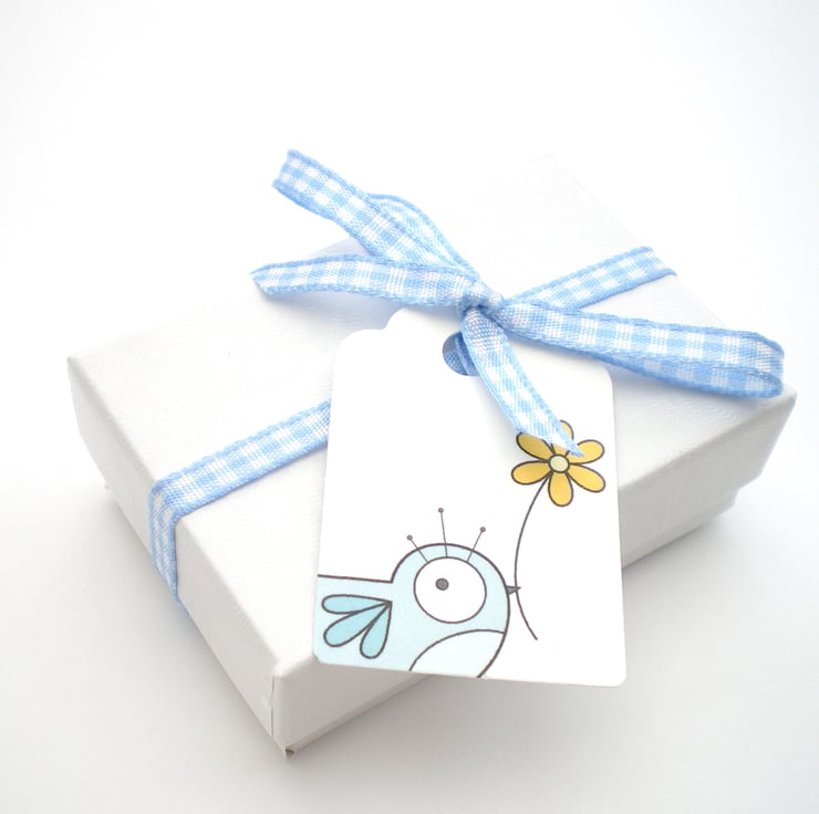 All alibalijewellery arrives packaged in a pretty white gift box with a blue ribbon. The box is made from recycled materials. I will add a personal message at no extra charge. Please request stating desired message at point of order.