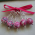 These stitch markers come hand tied with a ribbon and with their own organza gift bag to keep them safe when not in use.