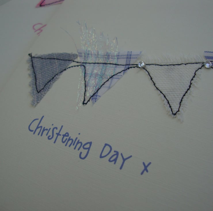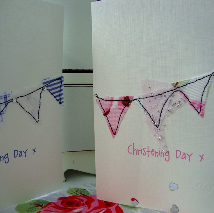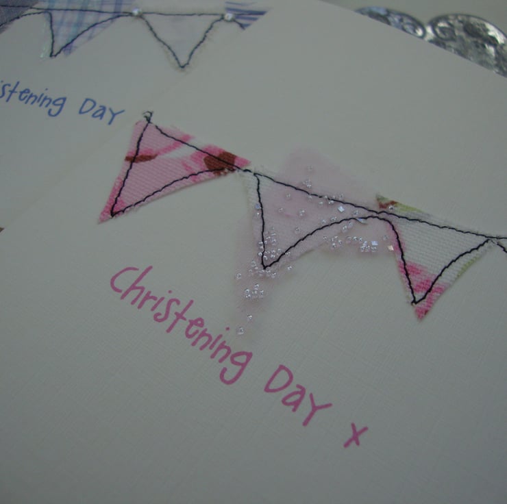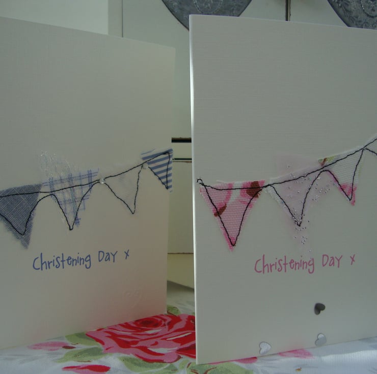 these baby bunting christening cards are available in either blue or pink and are made from fabric machined onto card with a touch of sparkle and sprinkles of love they are just perfect for babys special day