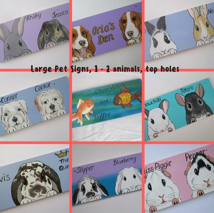 I have painted signs for rabbits, guinea pigs, sheep, goats, dogs and cats - I'm happy to paint any animal on the sign, so long as I have a clear picture to work from.