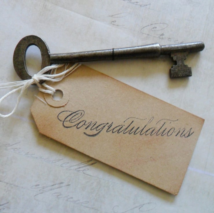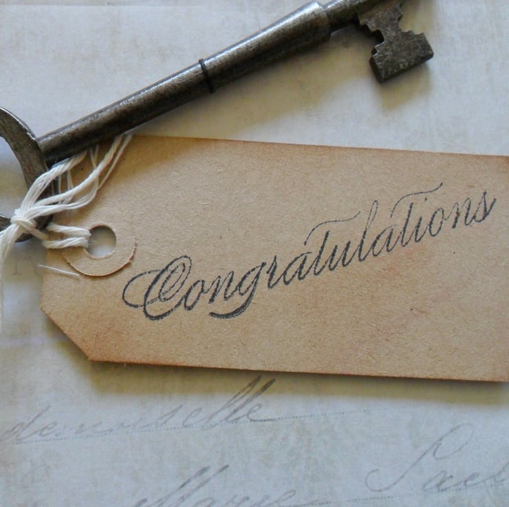 I have distressed and stamped the words "CONGRATULATIONS" onto a luggage label. Attached is a vintage key. Tie to a gift, flowers or even a new car!!!! ....