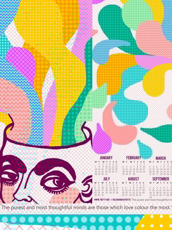 Details: A large, unframed poster calendar for 2013, by Helena Maratheftis. Printed on beautiful, 235gsm satin photo paper with a semi-gloss finish. Watermark will not be on the final print!