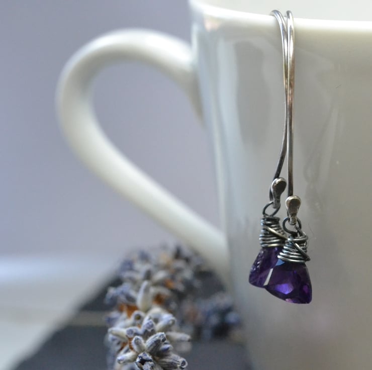 I've handforged a lovely elegant curvy earwire to accentuate the cut of the stone. The silver is oxidised and hand polished to give a gorgeous deep colour.