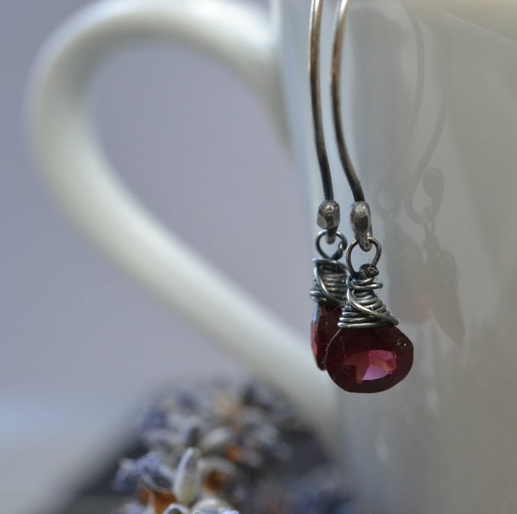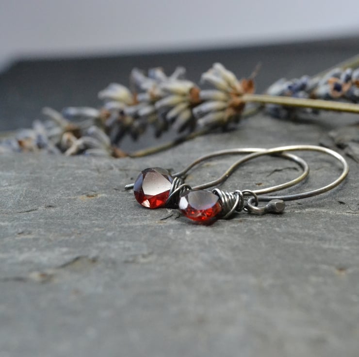 Garnet is one of those gorgeous deep rich colours, perfect for brightening up a gloomy winters day. Teamed with oxidised silver to show off its colour.