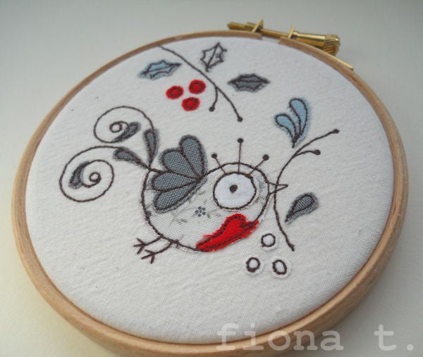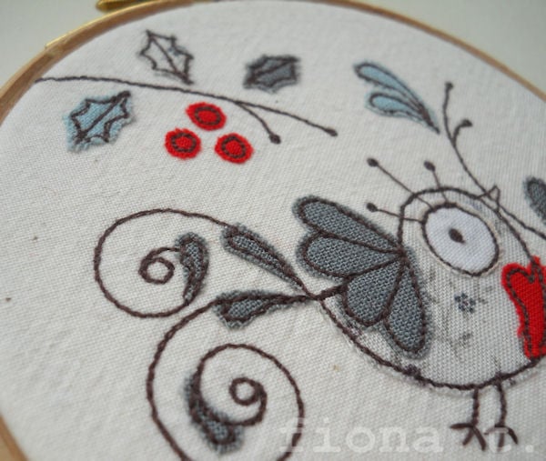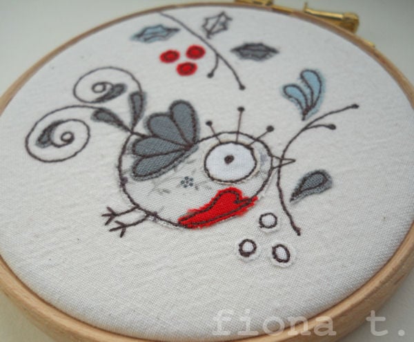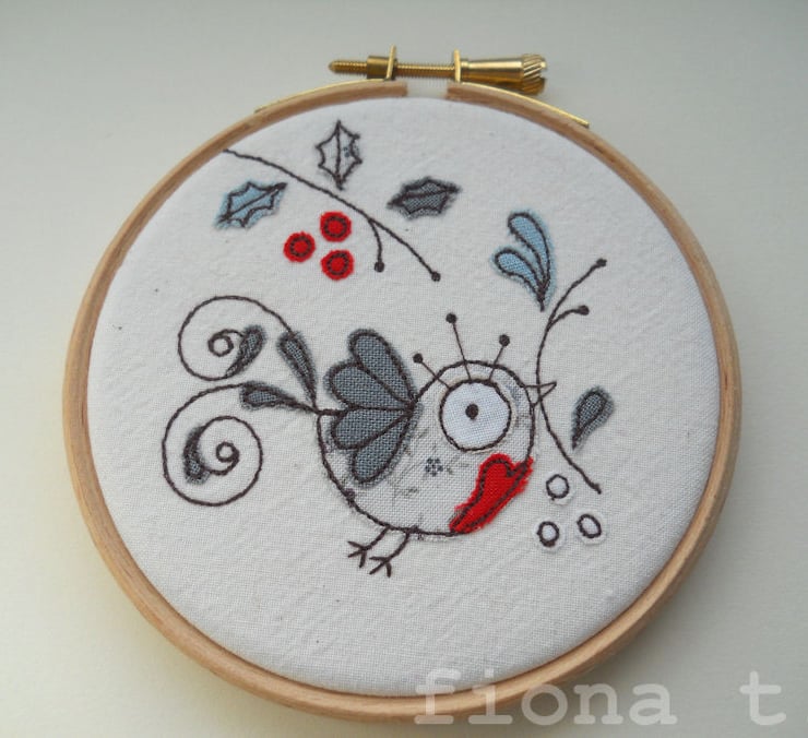 applique and embroidered hoop art – a christmassy version of my popular peacedove design. would look great as a contemporary christmas decoration.
