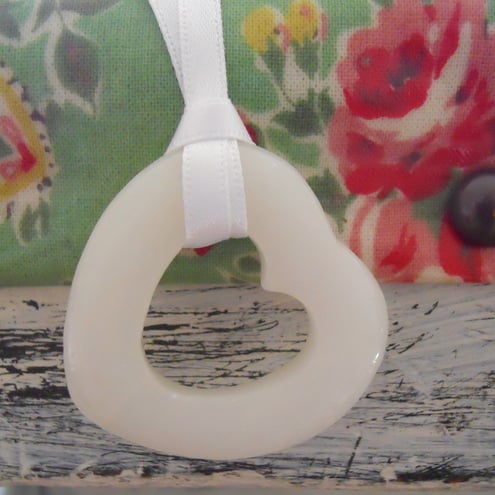 This is a sweet hollow heart on a white ribbon. Its very versatile and can be worn long or short depending on your mood. ~♥~♥~
