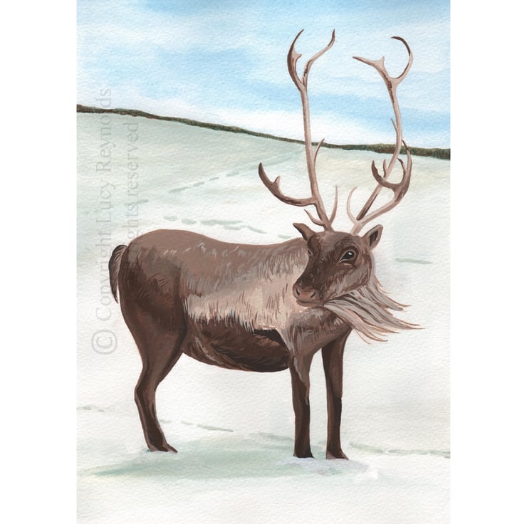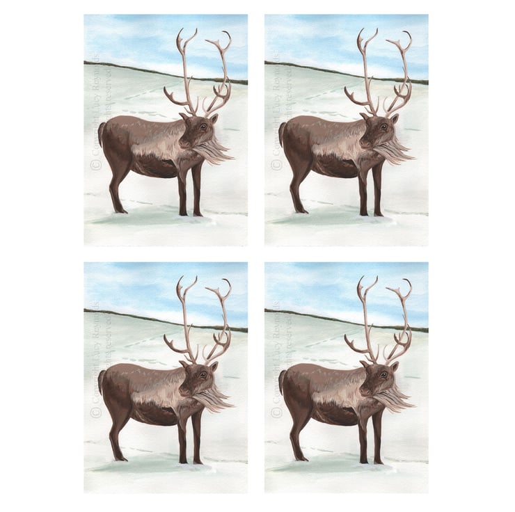 Pack of 4 reindeer Christmas cards. I painted the original illustration in gouache.