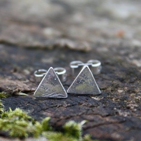 Tiny triangular textured sterling silver stud earrings.