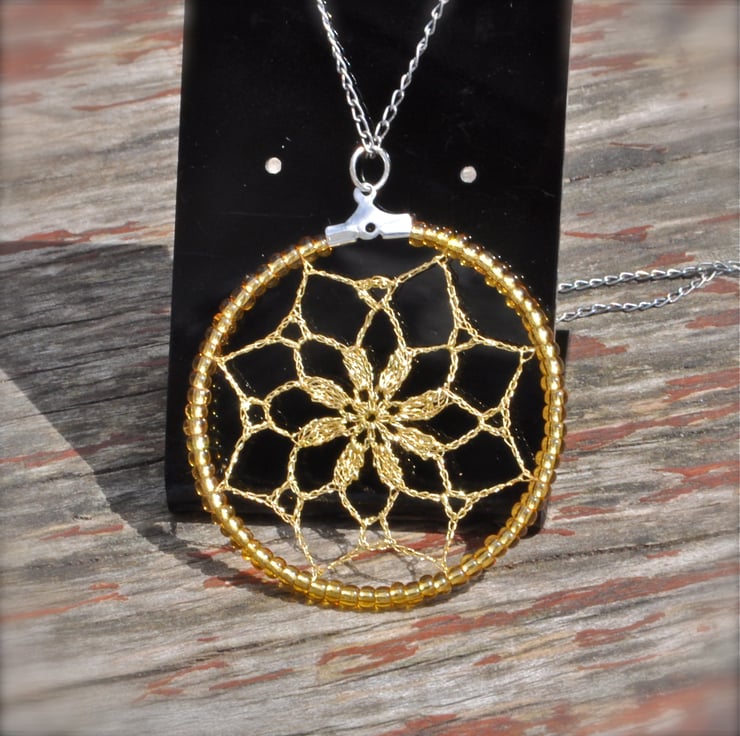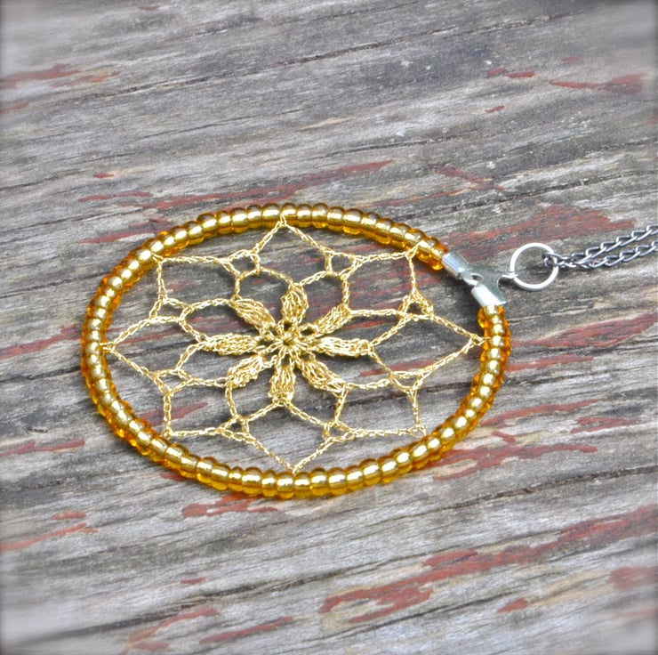That is the new look for my favorite design - Delicate Lace Earrings. Wear the lace as a most unique jewellery piece - delicate and light. With golden color glass beads and most intricate lace pattern.