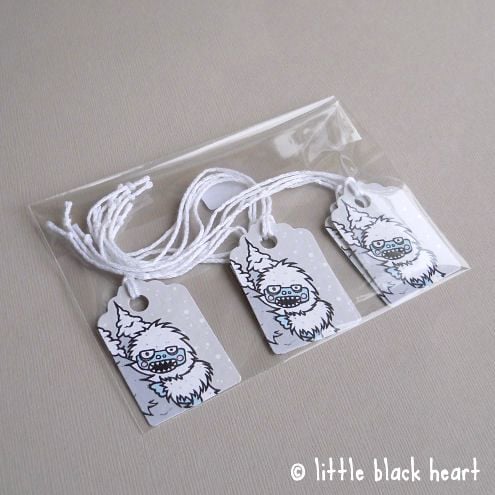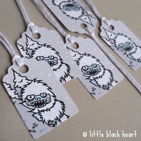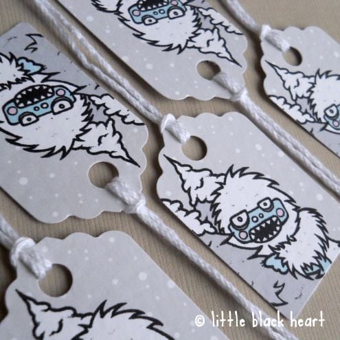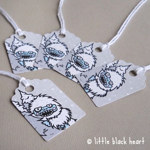 a pack of 5 gift tags, featuring a print of my jolly yeti design.