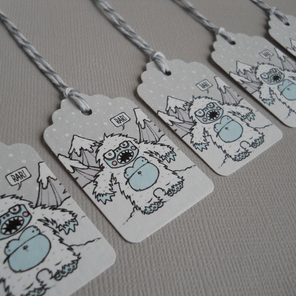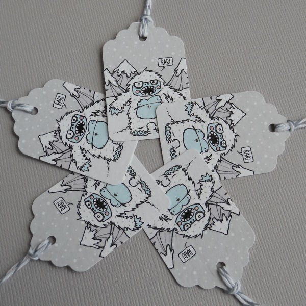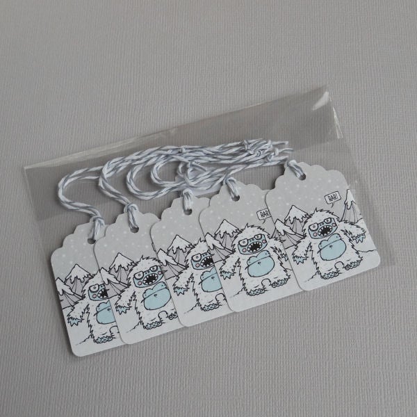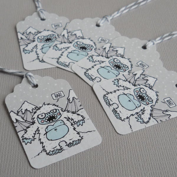 a pack of 5 gift tags, featuring a print of my little yeti design.