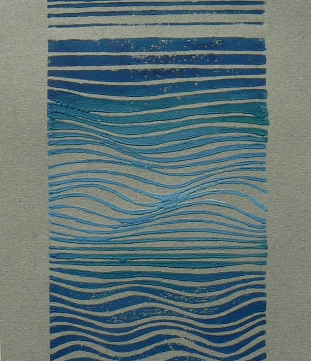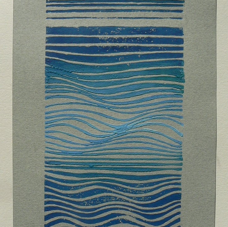 Both the lines and the colour produce the movement, and although the obvious description is, water, the sea, waves; while I was cutting this, it was really all about feeling calm and mellow and the whole thing being very soothing. View it however you choose.