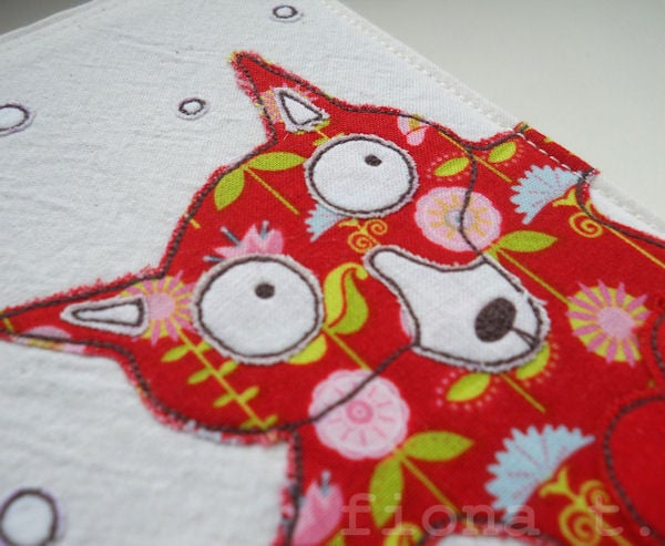 the cotton fabrics are layered and appliqued onto pre-washed calico, the detail is drawn on with free machine (free motion) embroidery. i then make up the finished item.