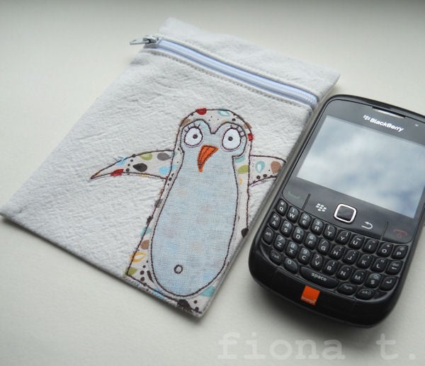 this appliqued and free motion embroidered gadget case is suitable for most smart phones, cameras, ipods etc, but would be equally useful as a little purse to store the bits and bobs that get lost in the bottom of your handbag.