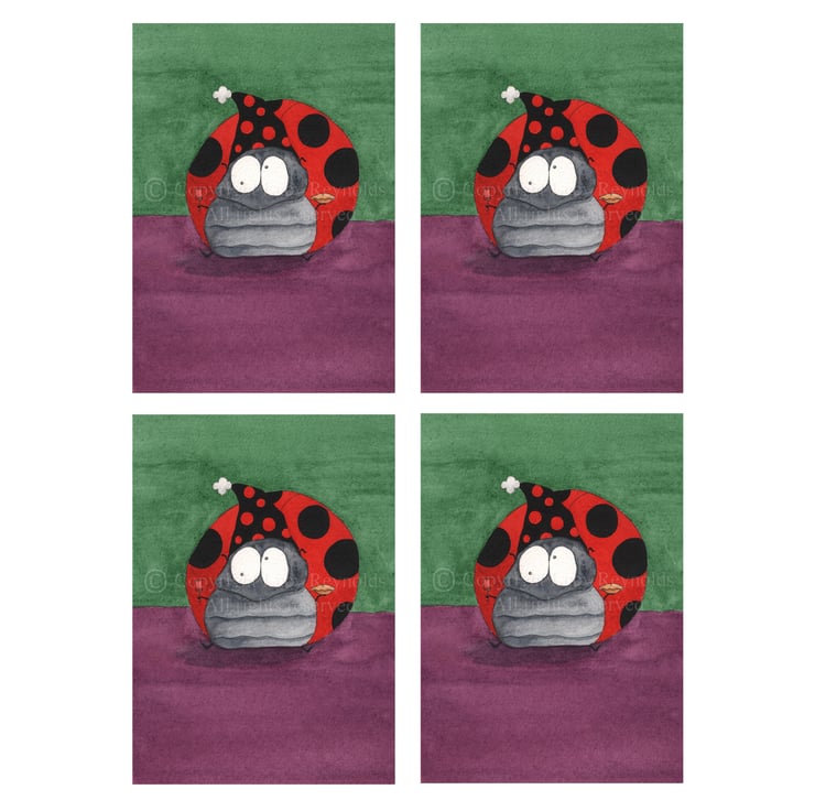 Pack of 4 greeting cards featuring my 'Christmas Critter' illustration. I painted the original image with watercolours.
