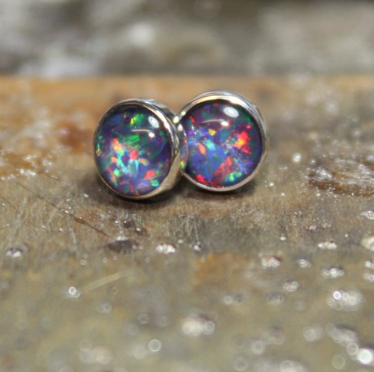 Simple sterling silver stud earrings set with stunning opal triplet cabochons.