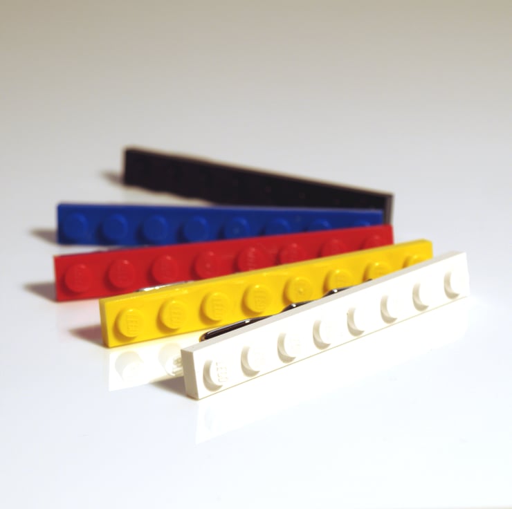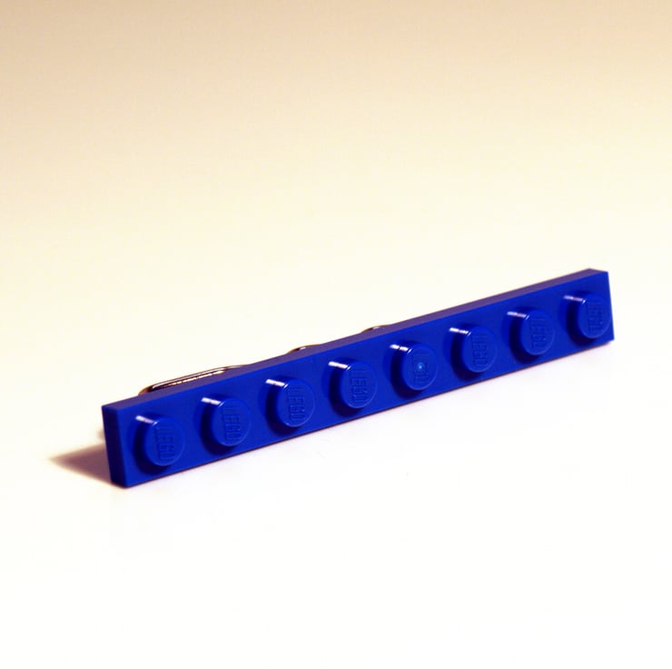 Blue LEGO® tie bar made from blue LEGO® plates, with many more colours available. Who doesn't love Lego? Retro, nostalgic and available in every colour. Lego accessories are perfect for every occassion - daytime, night time, casual or formal, in the pub or at a wedding this tie clip will get you noticed.