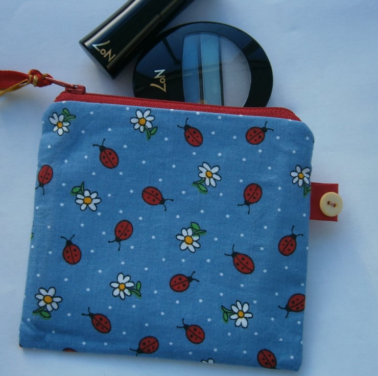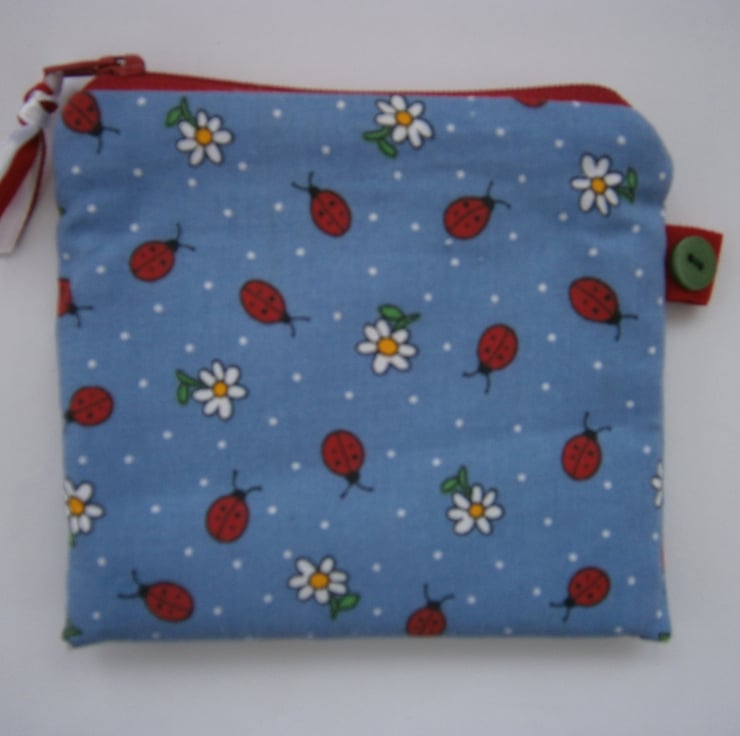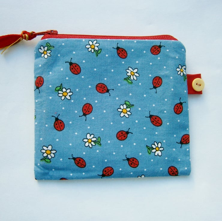Pretty little ladybirds printed fabric coin purse, perfect for your coins, notes and cards.