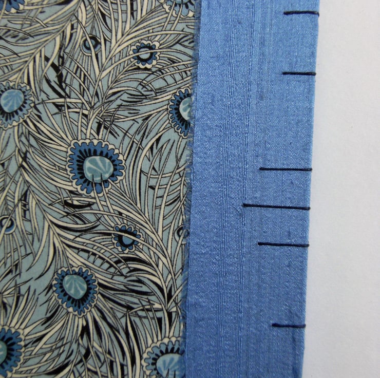 I have hand-lined the fabric with a fine handmade paper, to strengthen it and prevent stretching.