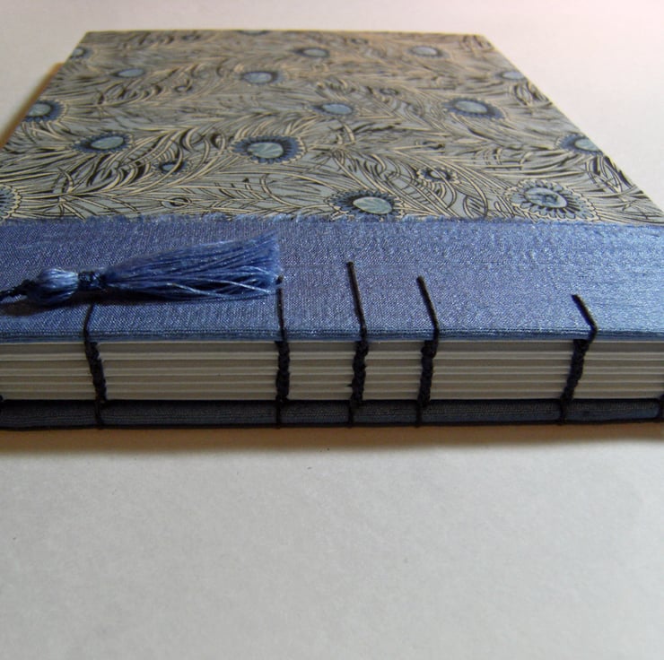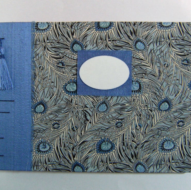 The covers are lined with wedgewood blue art paper, which tones well with the covering materials.