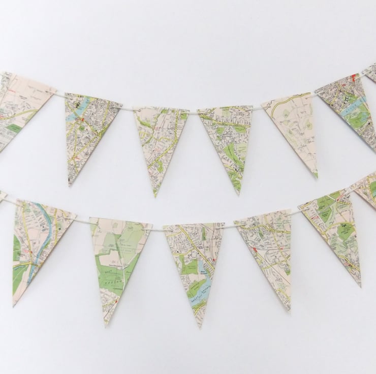 This vintage London map garland would look wonderful in any room! The vintage colours are gorgeous! Great for a party or celebration!