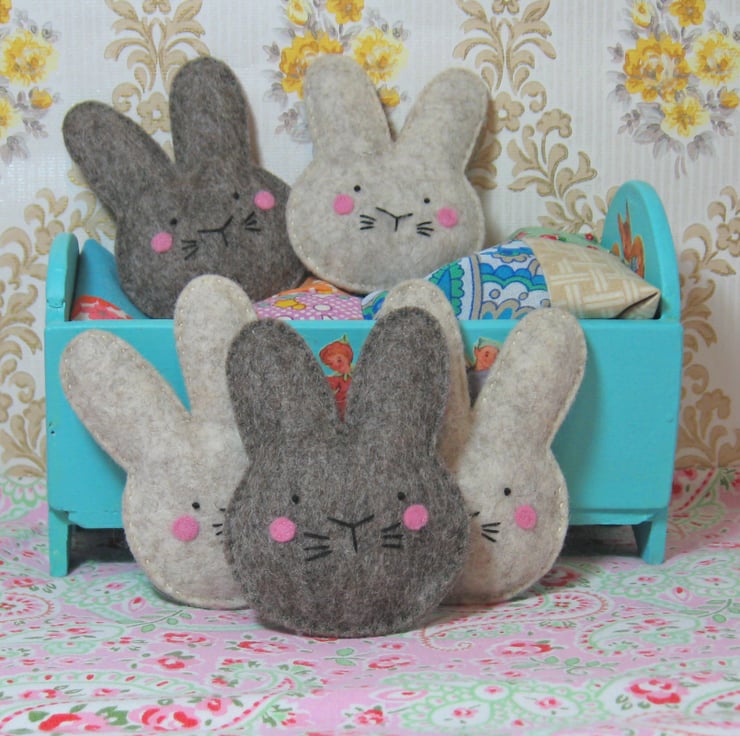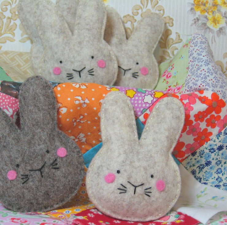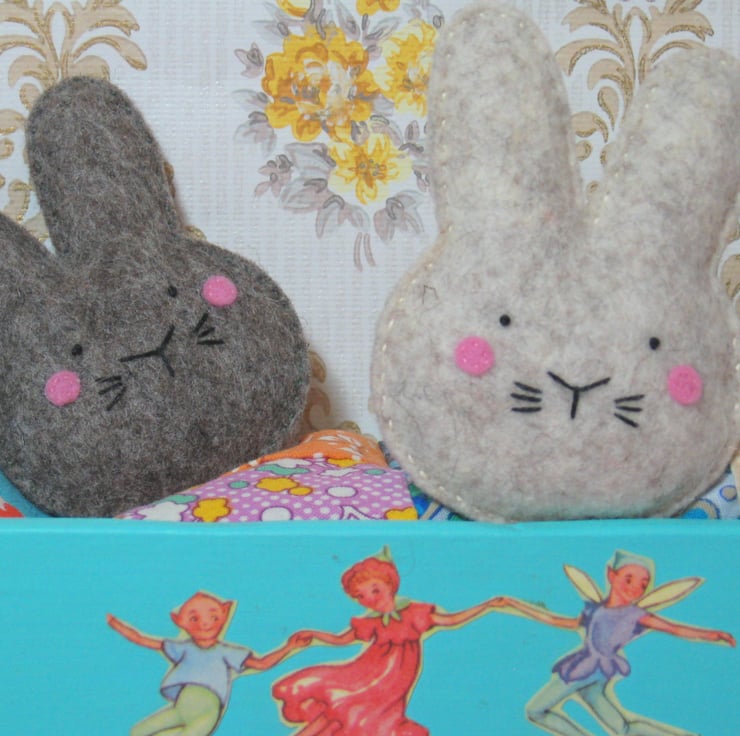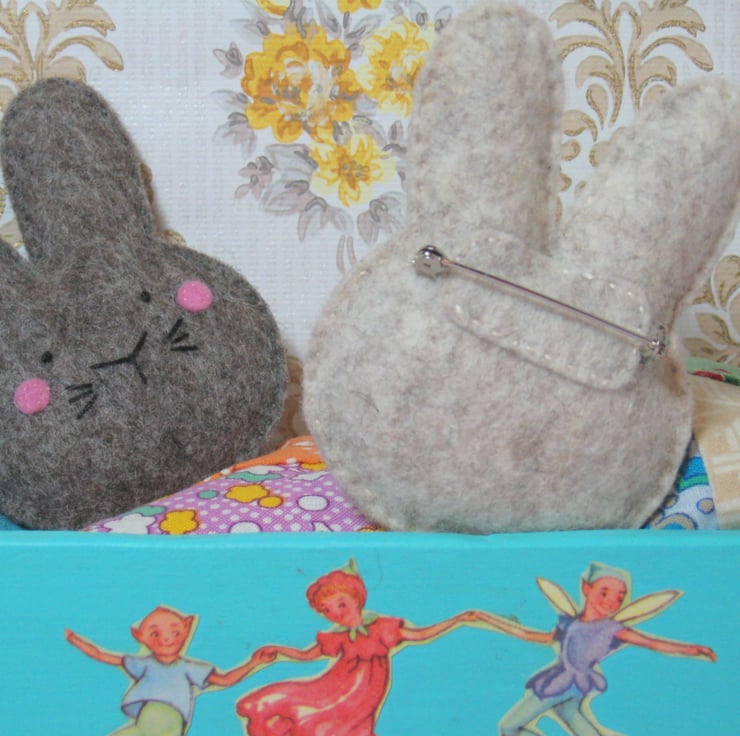 These bunnies brooches are plump and look very sweet pinned to a warm winter coat or on the side of a favourite tote bag.