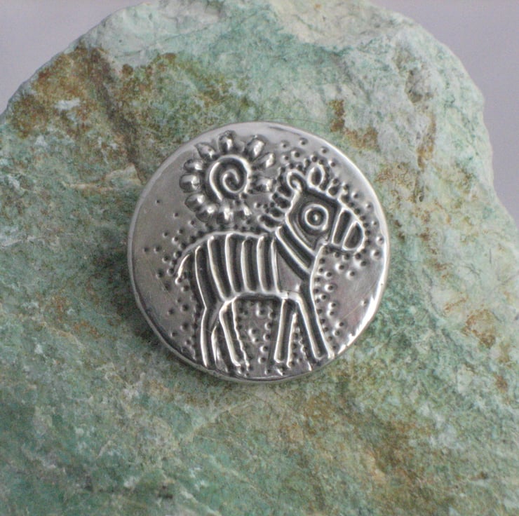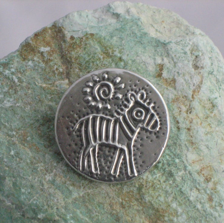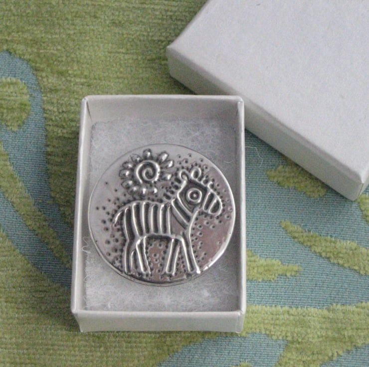 This brooch has been hand-made in modern lead-free pewter. Measuring 32mm in diameter, it has a 25mm pin with safety catch on the reverse.Comes gift boxed.
