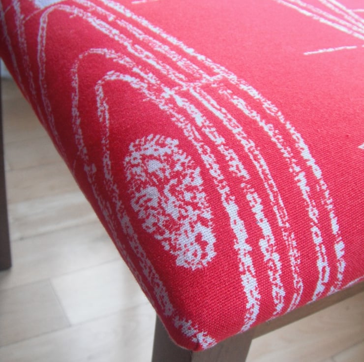 As you may have noticed from our shop, we love colours, vintage patterns and furniture, so we try to incorporate them as much as we can in our creations. We like to keep an eye for good quality vintage materials and furniture to renovate and recycle, giving them a new lease of life. This originally rather dull piano stool has been completely transformed by the choice of beautiful 1950s fabrics and would make a statement on any room, used as a piano stool, window stool or simply as a decorative piece in any part of the house.