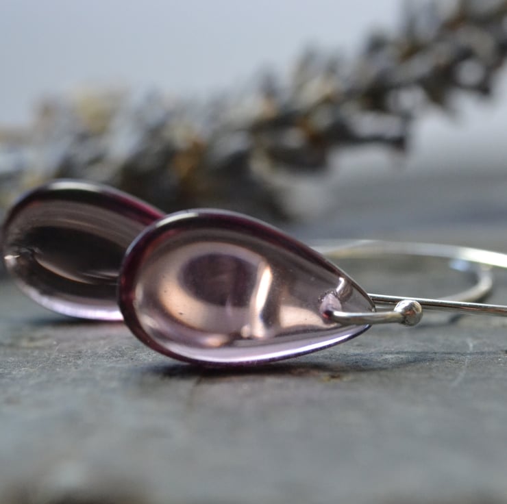 I've been holding onto these purple glass drop beads for years, and thought I should share them! They remind me of sweeties, and are so gorgeous I wanted to give them a simple setting.