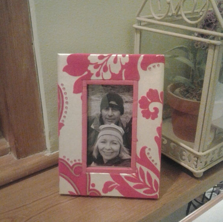 After seeing this beautiful paper in a shop, it inspired me to create something that could stand on show. With it's bold pink colour and paterns giving an almost ornate classic style, I decided on a picture frame.