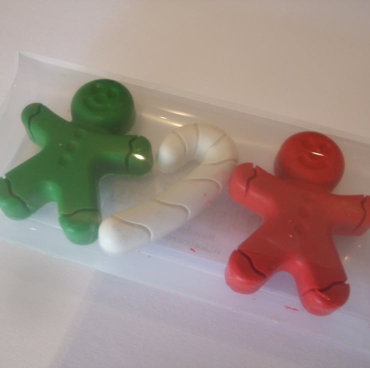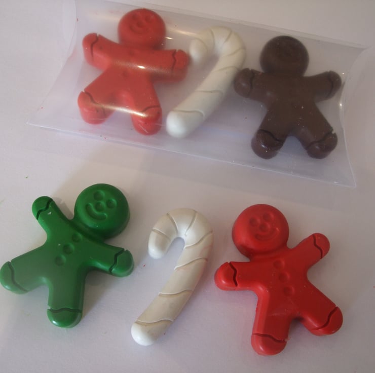 These cute gingerbread men and candy cane crayons are great fun for any young child that loves to colour. They are handmade using high quality, non-toxic wax crayons and are packaged in a neat plastic pillow box which is easy for little hands to open and close.
