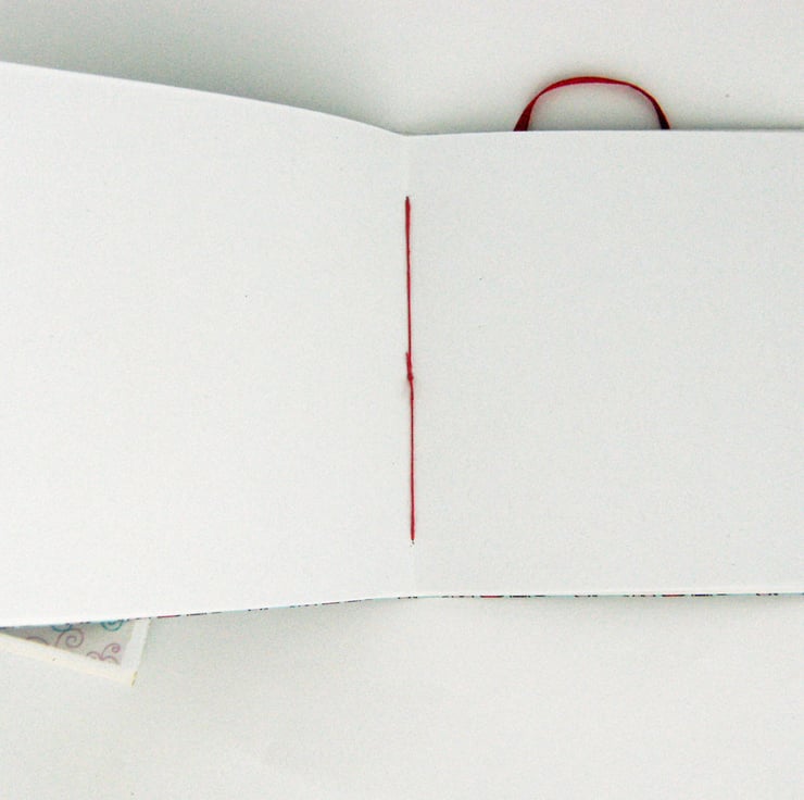 Each note-book has 30 pages (60 sides) of plain white paper. They are hand-stitched with red linen thread.