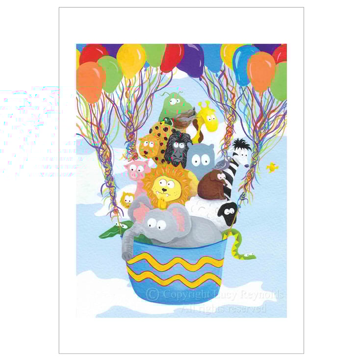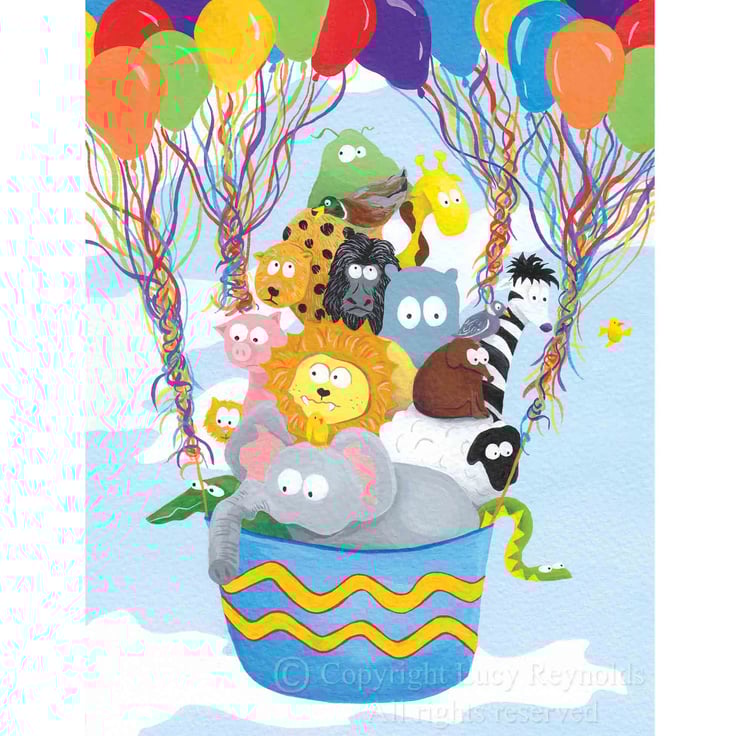 An archival quality digital print of 'Balloon Animals'. Printed on acid-free 310gsm fine art paper using pigment inks and an 8 colour system. The printed area is 13 by 10 inches, printed on A3 paper with a white border.